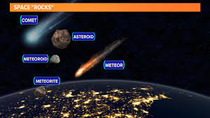 The small pieces of debris (meteors) enter the earth's atmosphere and burn up as they do so.